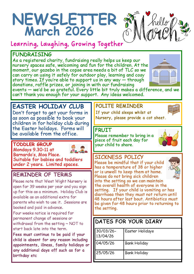 Eligible 3 year old's will be entitled to 30 hours FREE childcare. (Those not eligible for 30 hours will still get 15 hours FREE)